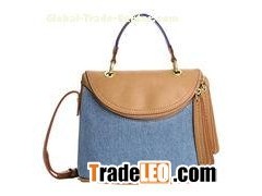 Fashion Ladies handbag made of denim fabric with PU leather trim,zip around closure